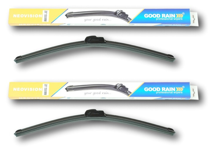Wycieraczki Good Rain na przednią szybę samochodu posiadają  konstrukcję bezprzegubową. Guma w wycieraczkach pokryta jest specjalną powłoką, dzięki, której szyba jest bardzo dobrze czyszczona. Na całej długości wycieraczki znajduje się spojler, którego zadaniem jest dociskanie jej do powierzchni szyby, nawet przy dużych prędkościach. Duży wpływ na dobre przyleganie wycieraczek do szyby samochodu ma również zastosowana w ich konstrukcji specjalna prowadnica, dzięki, której siła nacisku jest  regularnie rozłożona na całej długości pióra wycieraczki. Stały nadzór nad  procesem  produkcji oraz wysokiej jakości produkty użyte do ich wykonania sprawiają , że wycieraczki te, profesjonalnie spisują się w każdych warunkach atmosferycznych.
