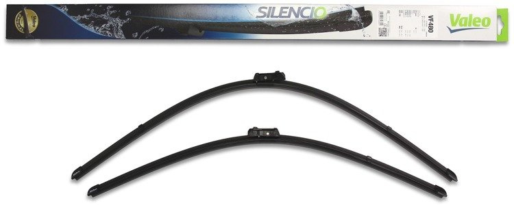 Wycieraczki Valeo Silencio na przednią szybę mają konstrukcję aerodynamiczną i nie posiadają klasycznych przegubów. Na całej ich długości znajduje się spojler, który ma za zadanie dociskać wycieraczkę do szyby, nawet przy dużych prędkościach. W konstrukcji wycieraczki zastosowano stalowe listwy, dzięki którym wycieraczka dobrze przylega do szyby ( regularnie rozłożona siła nacisku na całej długości pióra wycieraczki). Specjalny skład gumy sprawia, że doskonale spisują się one w każdych warunkach atmosferycznych; dodatkowo guma ta posiada specjalne struktury (kanaliki), które rozprowadzają płyn do spryskiwaczy po całej szybie.