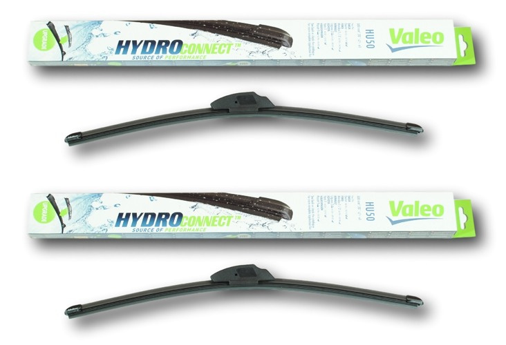 Wycieraczki Valeo HydroConnect na przednią szybę mają konstrukcję aerodynamiczną i nie posiadają klasycznych przegubów. Na całej ich długości znajduje się spojler, który ma za zadanie dociskać wycieraczkę do szyby, nawet przy dużych prędkościach. W konstrukcji wycieraczki zastosowano stalowe listwy, dzięki którym wycieraczka  dobrze przylega do szyby (regularnie rozłożona  siła  nacisku na całej długości pióra wycieraczki). Specjalny skład gumy sprawia, że doskonale spisują się one w każdych warunkach atmosferycznych; dodatkowo guma ta posiada specjalne struktury (kanaliki), które rozprowadzają płyn do spryskiwaczy po całej szybie.