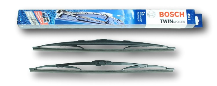 Wycieraczki Bosch Twin - na przednią szybę - posiadają metalowy stelaż. Jest on bardzo solidny i dwukrotnie lakierowany. Wewnątrz gumy znajduje się szyna stabilizująca odpowiadająca za prawidłowe przyleganie wycieraczki. Do konstrukcji pióra wycieraczki zastosowano 2 rodzaje gumy. Na górze znajduje się część miękka odpowiadająca za cichą pracę, natomiast na dole twarda, która ma za zadanie precyzyjne czyszczenie szyby ze śniegu, wody itp. Dodatkowo pokryta jest specjalną powłoką, powodującą lepszy poślizg na szybie, aby siła tarcia była jak najmniejsza. Prawidłowe działanie wycieraczki przy dużych prędkościach, firma Bosch  zapewniła, stosując spojler, dzięki któremu wycieraczka jest odpowiednio dociskana do szyby. Zalecany jest on od strony kierowcy.