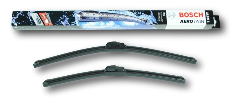 Wycieraczki Bosch Aerotwin posiadają konstrukcję aerodynamiczną i nie mają klasycznych przegubów. W ich wnętrzu znajduje się specjalna szyna stabilizująca Evodium, która odpowiada za przyleganie do szyby i sztywność wycieraczki. Do konstrukcji pióra wycieraczki zastosowano 2 rodzaje gumy. Na górze znajduje się część miękka odpowiadająca za cichą pracę, natomiast na dole twarda, która ma za zadanie precyzyjne czyszczenie szyby ze śniegu, wody itp. Dodatkowo pokryta jest specjalną powłoką, powodującą lepszy poślizg na szybie, aby siła tarcia była jak najmniejsza. Wycieraczki Bosch Aerotwin spełniają swoją rolę nawet przy dużych prędkościach dzięki spojlerowi wbudowanemu na całej długości wycieraczki, który sprawia, że pęd powietrza dociska wycieraczkę do szyby.