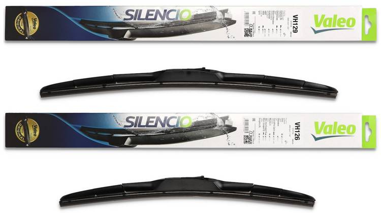 Wycieraczki Valeo Silencio Hybrid - na przednią szybę - posiadają konstrukcję klasyczną i zbudowane są z metalowych przegubów. Wycieraczki te łączą w sobie zalety wycieraczek płaskich (Valeo XTRM) i standardowych. Zastosowane tworzywo połączone z metalową konstrukcją pełni rolę spojlera na całej długości wycieraczki; spojler dociska ją do powierzchni szyby, nawet przy bardzo dużych prędkościach samochodu. Specjalny skład gumy sprawia, że doskonale działają w każdych warunkach atmosferycznych, a warstwa grafitu zapewnia optymalne wycieranie szyby. Guma posiada ponadto specjalne struktury(kanaliki) do rozprowadzania „płynu do spryskiwaczy” po całej powierzchni szyby. Gama wycieraczek Valeo Silencio Hybrid to najnowsza wersja wycieraczek firmy Valeo. Rozwiązanie to, jest coraz bardziej popularne wśród producentów nowych samochodów.